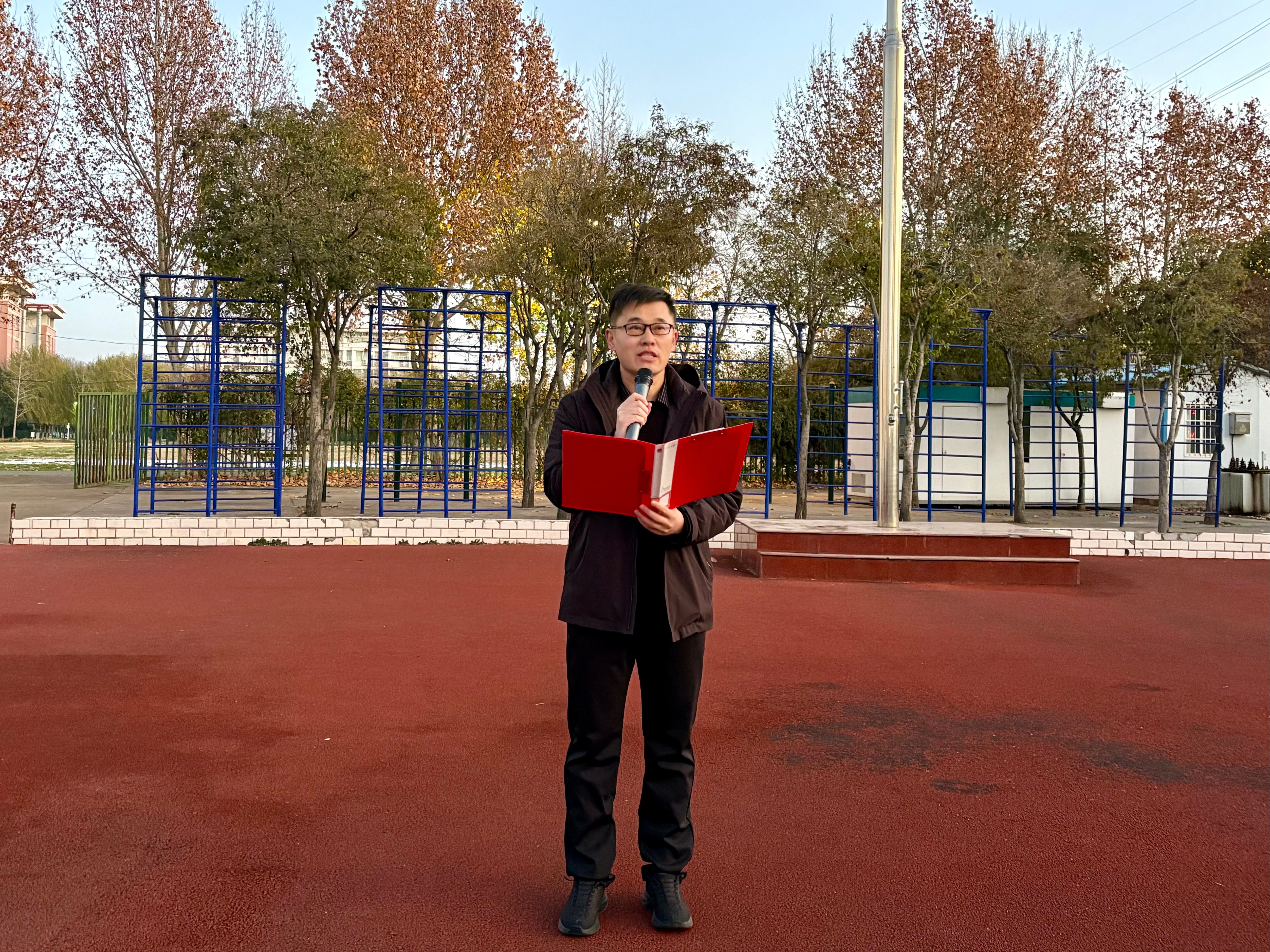 为深入学习贯彻党的二十届四中全会精神,引导全体师范生自觉将个人理想融入党和国家教育事业发展全局,12月15日,太阳集团tyc539MACAU于梁园校区体育场举行升旗仪式。学生处副处长袁慧、学院领导班子、辅导员、班主任以及全体学生参加活动。仪式由学院学工办副主任张旖旎主持。
