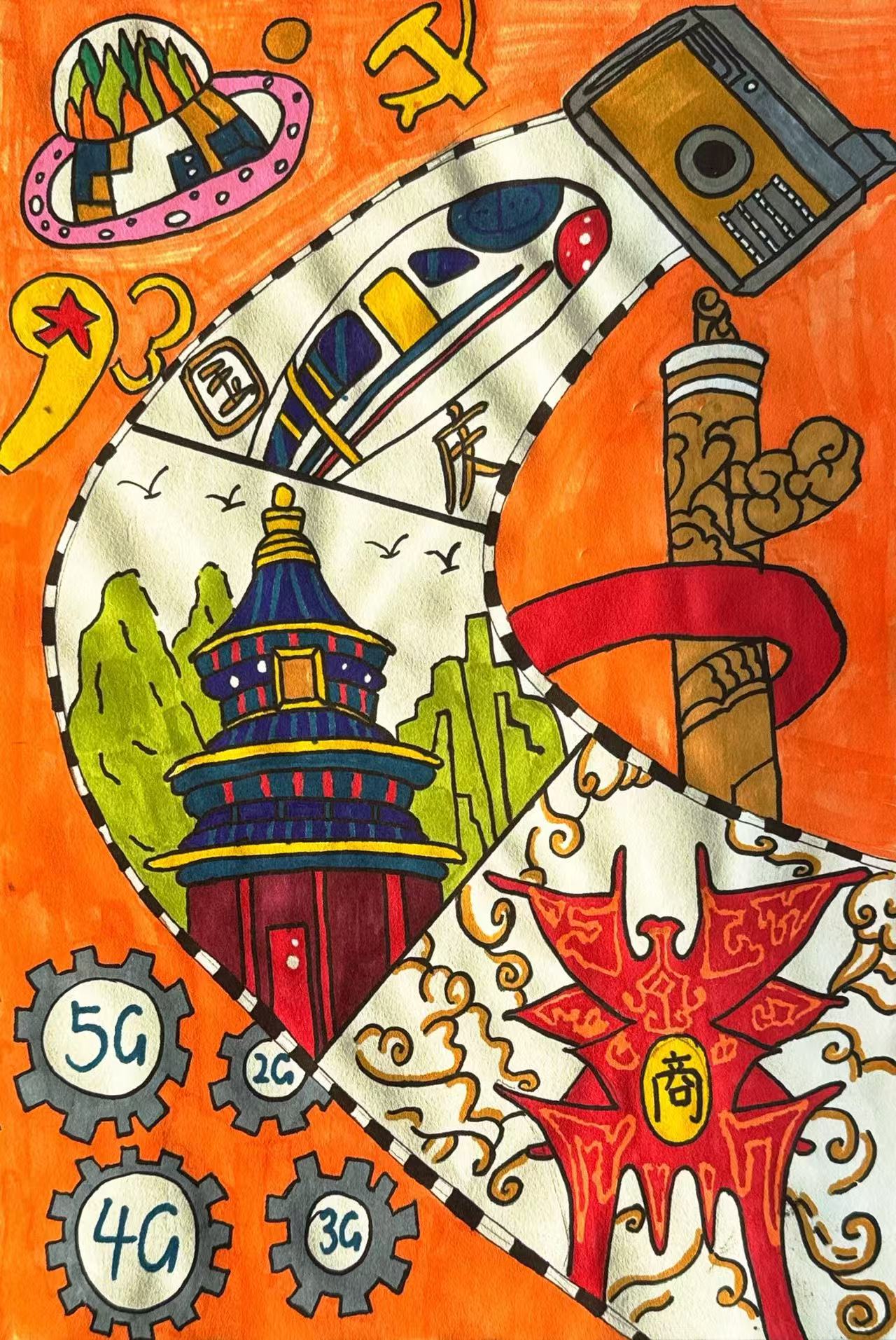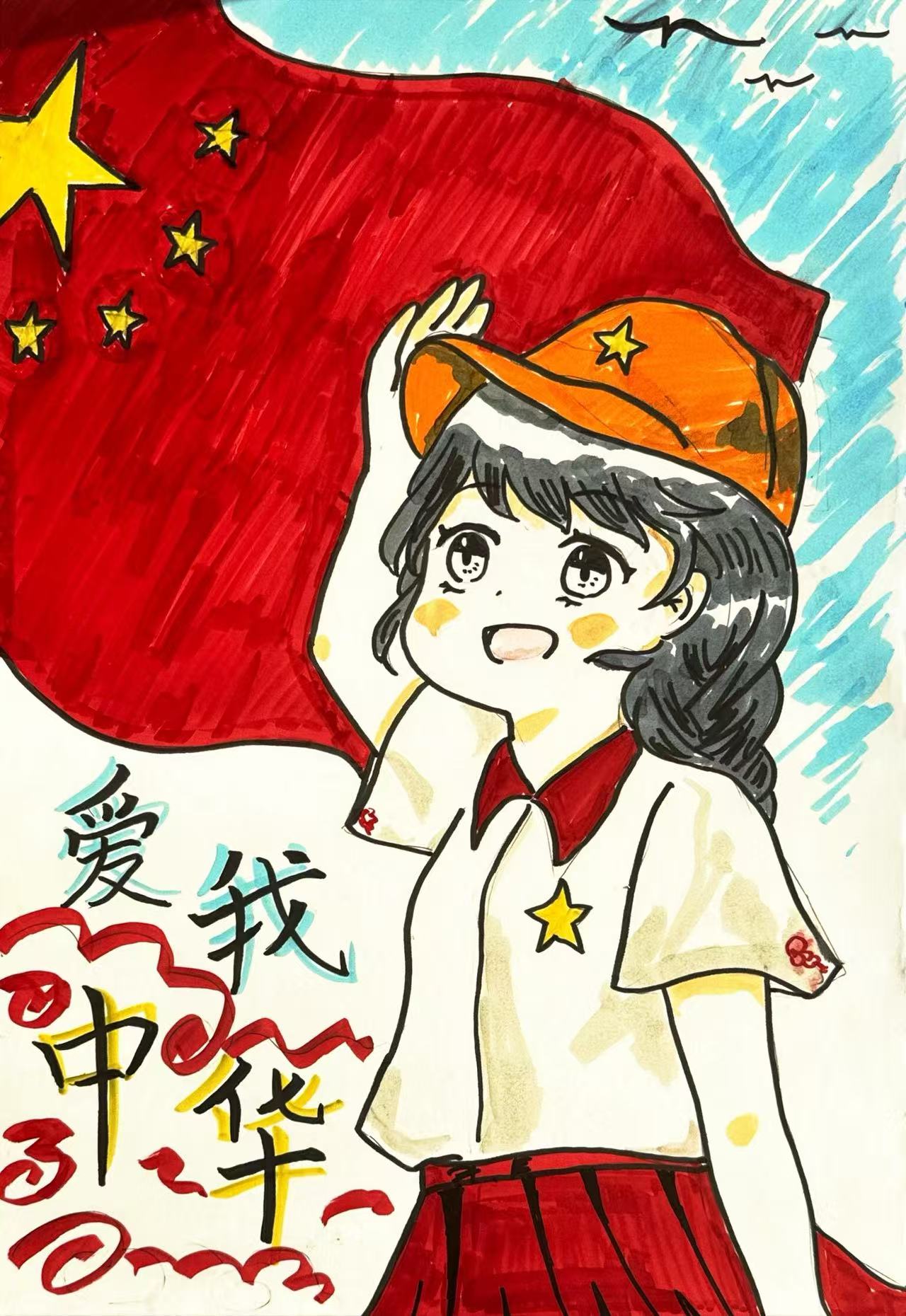 活动现场,教师党员结合国庆主题与红色元素,细致讲解构图技巧、色彩搭配及创作思路,引导学生党员围绕 “祖国山河”“时代新貌”“红色记忆” 等方向创作。师生党员手持画笔,或勾勒壮丽山河,或绘制鲜艳国旗,在笔墨交融间传递对祖国的深情祝福,现场既洋溢着创作的专注,又饱含浓厚的爱国热情。