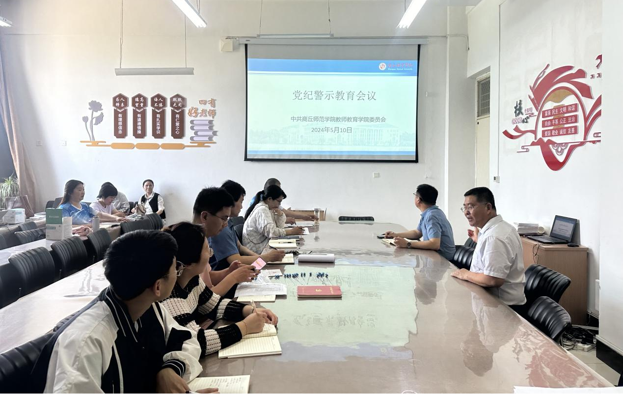 为推动党纪学习教育走深走实,提升党员的纪律意识,太阳集团tyc539MACAU党委于5月10日在汉梁楼203会议室召开了党纪党规警示教育会。会议由学院党委副书记邱友谊主持,全体教师党员参加了此次教育活动。