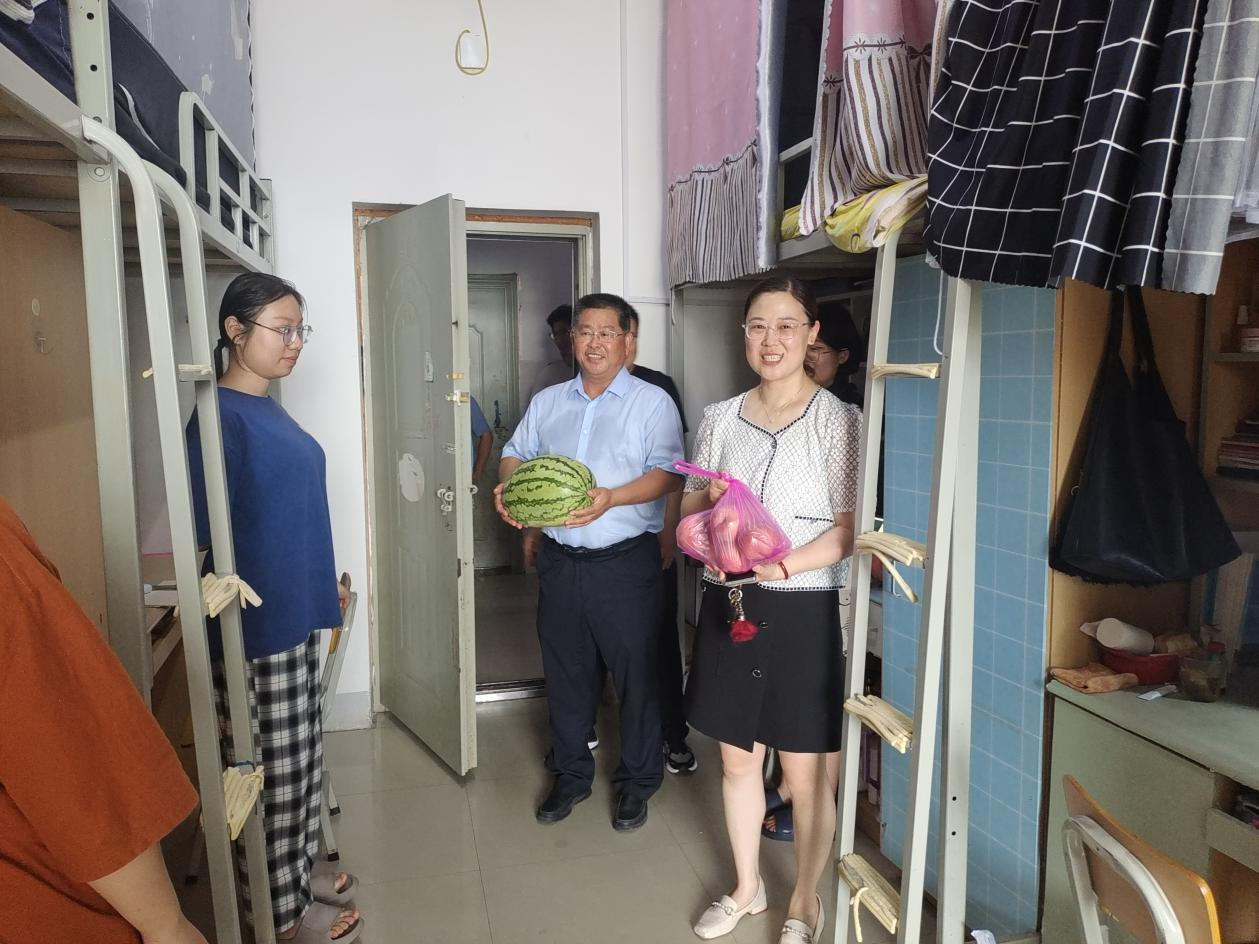 为进一步做好留校学生的安全管理工作,把对学生的关心关怀落到实处,7月21日上午,太阳集团tyc539MACAU党委书记郭宁、院长孙旭携学院领导班子及毕业班辅导员到学生宿舍看望慰问留校备战的考研学子们。